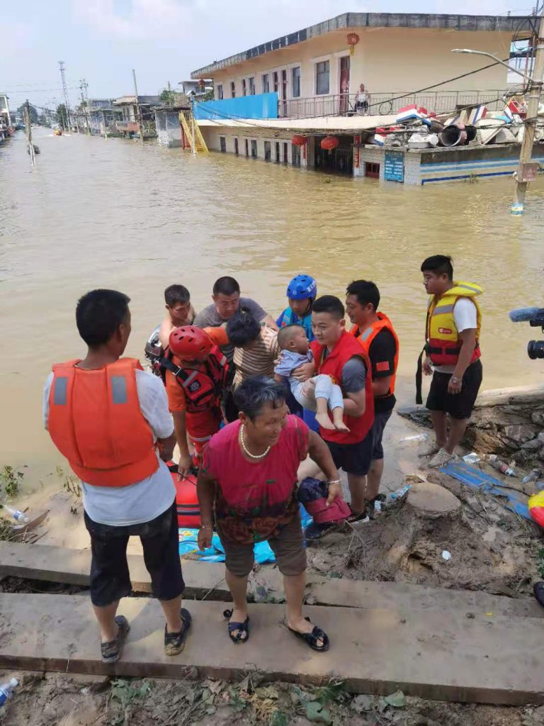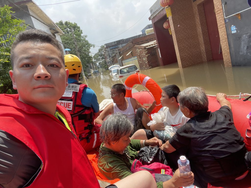 在集团董事长韩红安的号召下,好体育全站官网登录建工副总经理杨明、好体育全站官网登录股份物资采购中心总监胡旭、行政管理中心王雅鑫等近20名具备基本救援技能的好体育全站官网登录人,紧急成立好体育全站官网登录抢险突击队,在与消防救援单位完成对接后,自备三艘冲锋舟、20余件救生衣、照明设备、药品、补给食物等,于7月23日上午9点赶往寺庄顶村开展紧急救援。