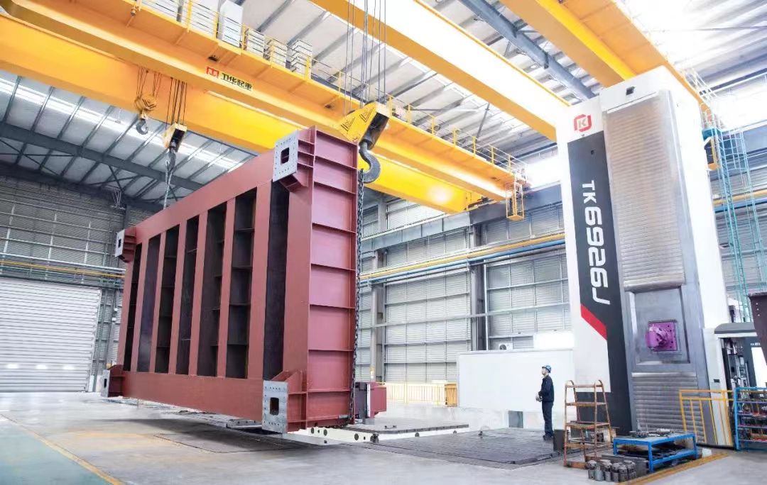 近年来,好体育全站官网登录引进多台技术先进的数控机床,助力车间生产作业,其中TK6926作为好体育全站官网登录最大落地镗床,尤其引人瞩目。该设备于2022年进入车间,具备高度智能化、优良的适应性、加工范围广、精度高等特点,在同类设备中各项性能均处于领先地位。