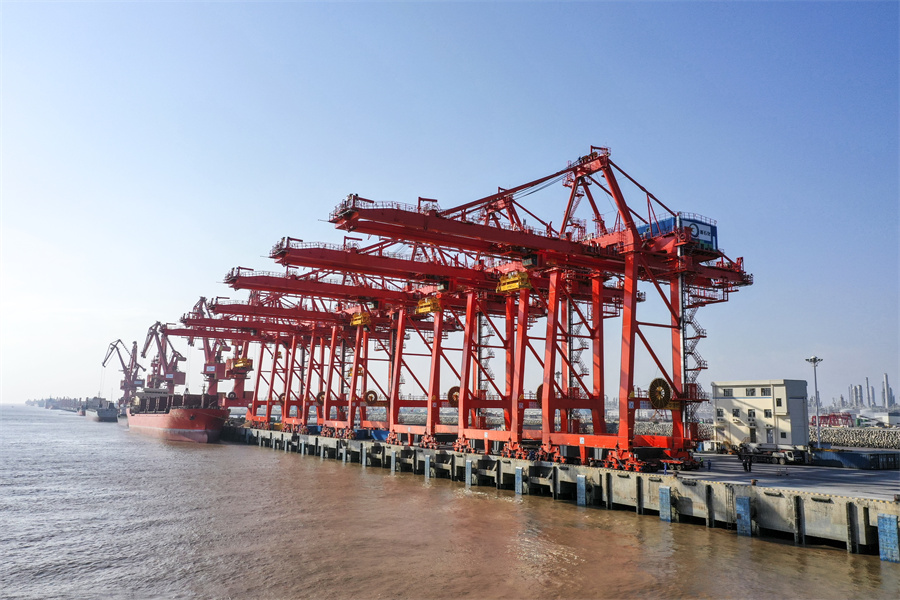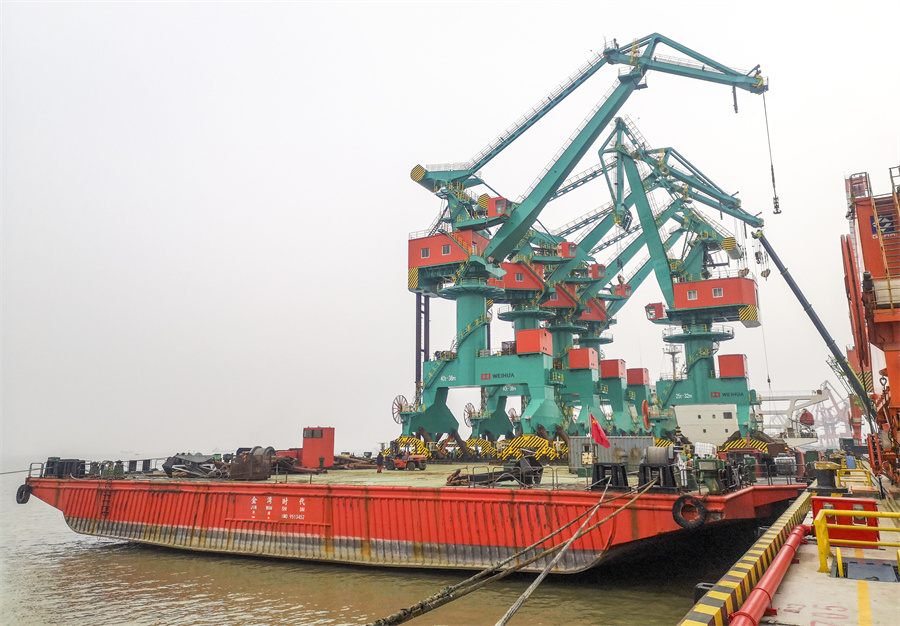 六月的风吹向舟山群岛好风光——好体育全站官网登录浙石化项目6台自动化岸边集装箱桥式起重机交付使用,为舟山建设贡献力量;