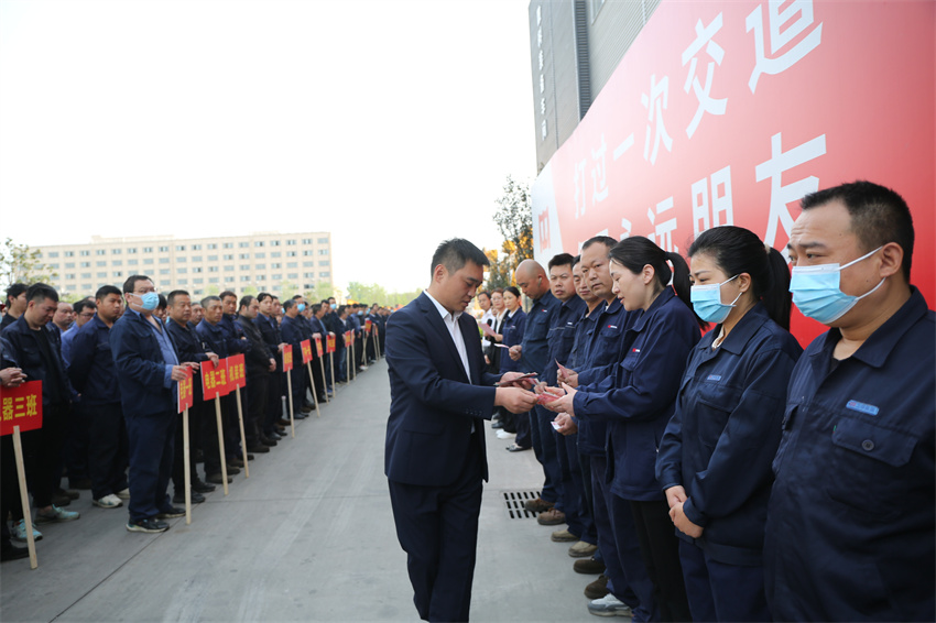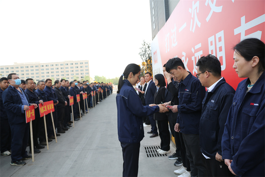 为切实增强全体一线员工质量安全工作的使命感、紧迫感和责任感,努力开创公司高质量发展新局面,2023年4月19日,河南好体育全站官网登录重型机械股份有限公司召开2023年一季度质量安全奖励大会,执行总裁谢保华,质量安环中心总监钮鹏超,制造管理中心副总监代艳云、孙朋,以及生产系统各部门负责人和全体一线员工参加会议。会议由质量安环中心副总监王爽主持。