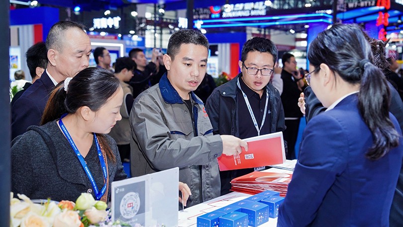 河南好体育全站官网登录总裁冯军(左一)为参展嘉宾介绍好体育全站官网登录概况